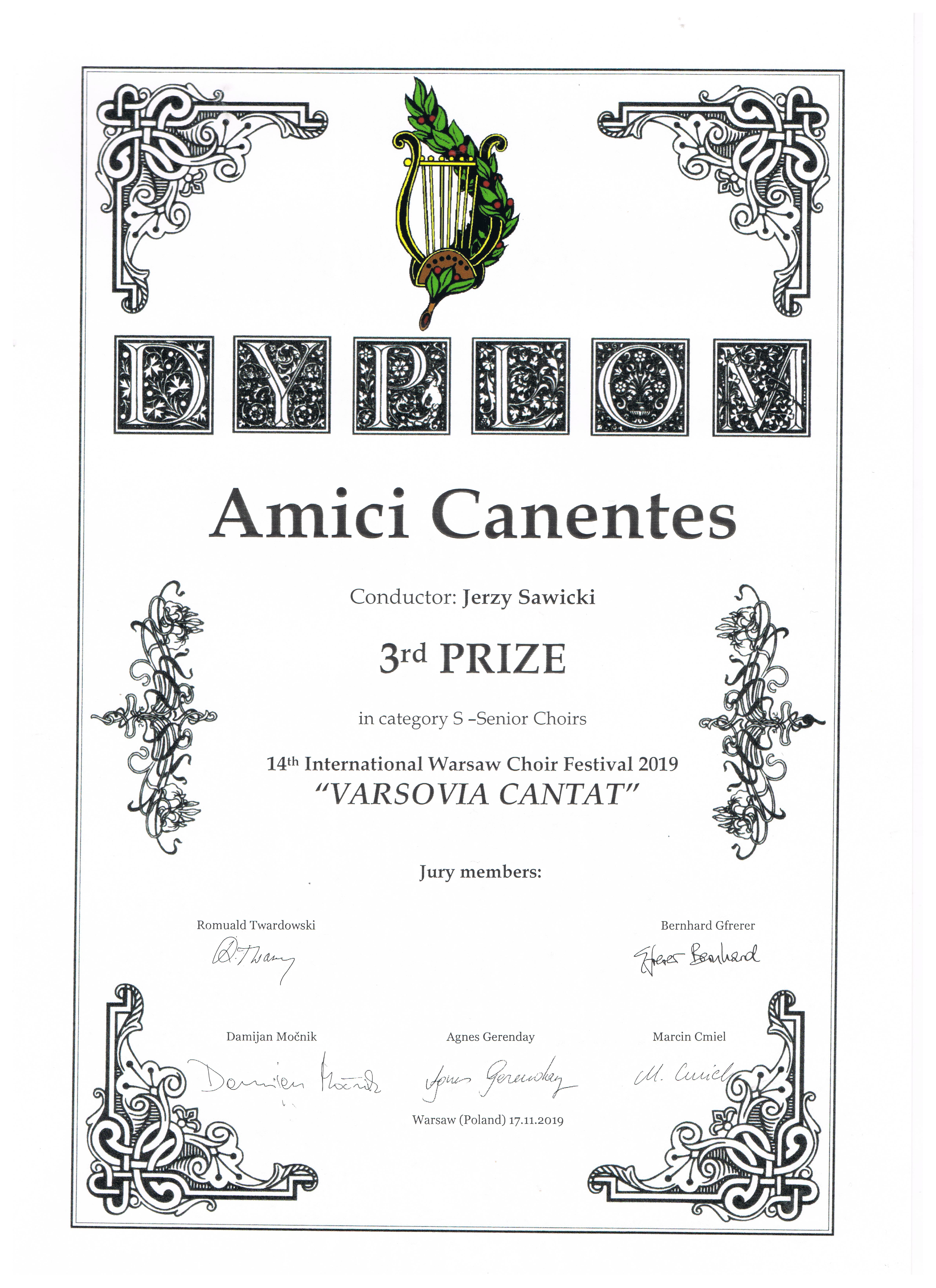 Chór Amici Canentes pod dyr. Jerzego Sawickiego zdobył trzecie miejsce (w kategorii S)