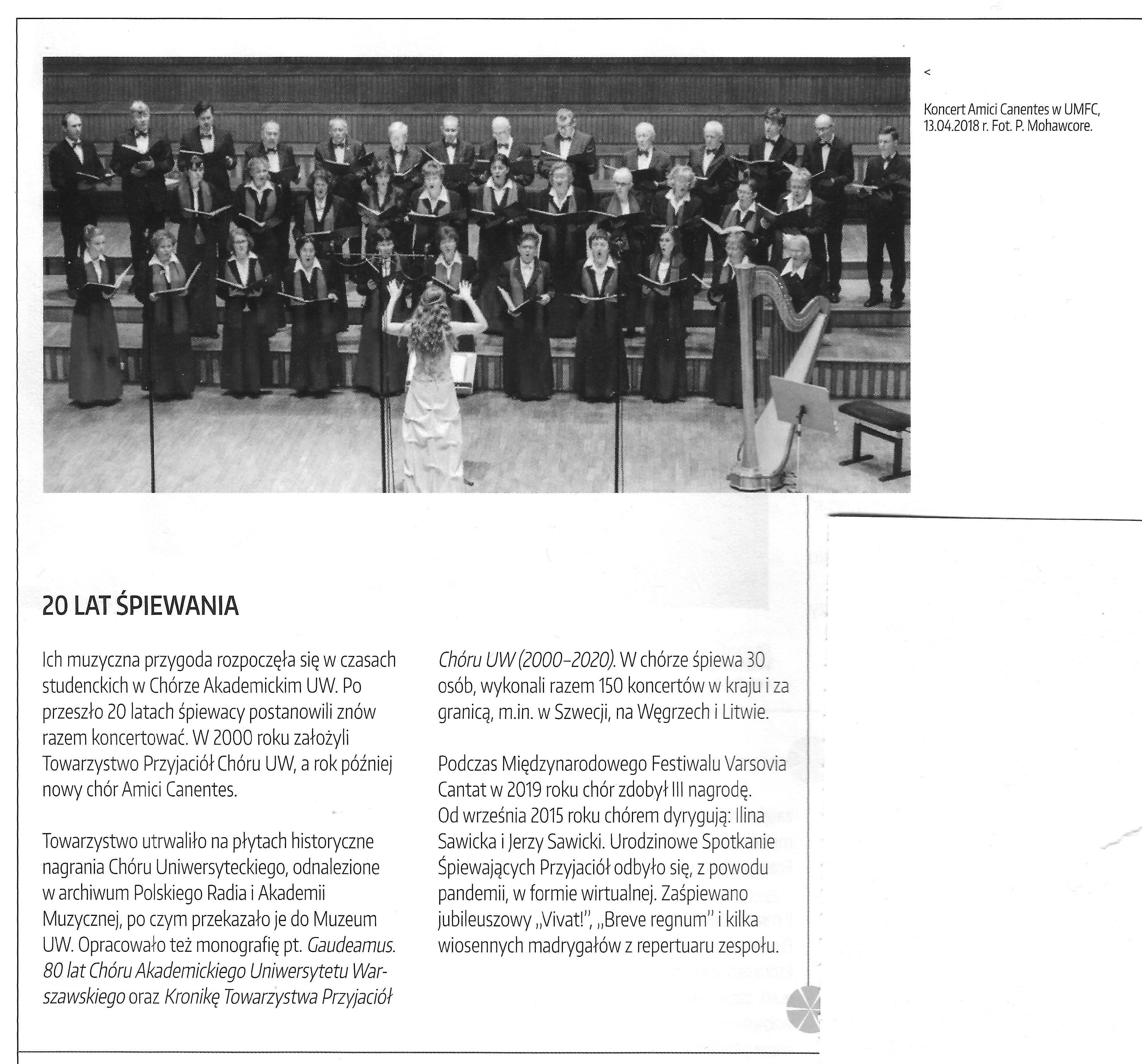 W Piśmie Uczelni „UW” nr 3 (96) 2020 zamieściliśmy artykuł z krótkim opisem naszej 20-letniej muzycznej przygody, wraz ze zdjęciem z koncertu w UMFC w kwietniu 2018 r. (M.L.)