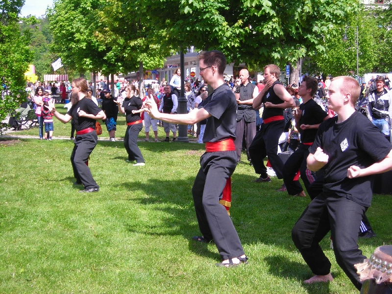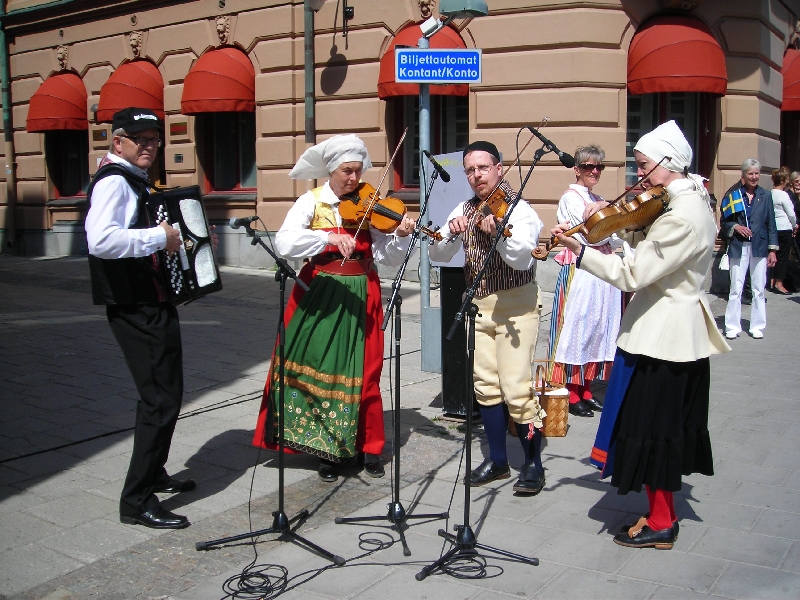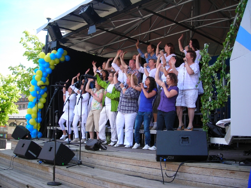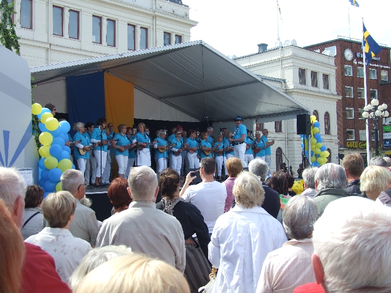 Od śniadania do godziny 15.30 mieliśmy czas wolny. Większość uczestników naszej wycieczki wybrała się do miasta, aby zobaczyć liczne imprezy odbywające się w tym świątecznym dniu na rynku przed Ratuszem i wzdłuż głównej, szerokiej ulicy. Na specjalnych estradach i wprost na chodniku odbywały się występy regionalnych zespołów chóralnych, tanecznych, muzycznych, gimnastycznych. Atmosferę święta podkreślały obecne wszędzie balony w narodowych barwach szwedzkich oraz flagi. Liczne kramy oferowały najprzeróżniejsze towary wyrobu miejscowego i nie tylko. W wielu miejscach tego miasta stoją kolorowe smoki oblegane przez małe dzieci. Kilka osób zostało w hotelu, by odpocząć po uciechach dnia poprzedniego.