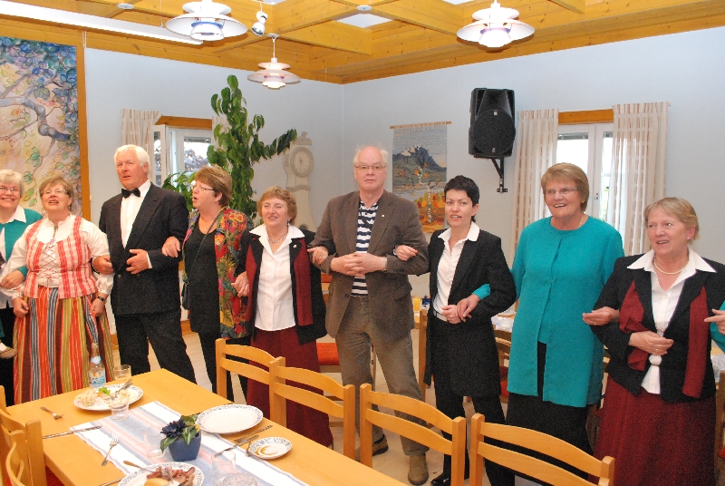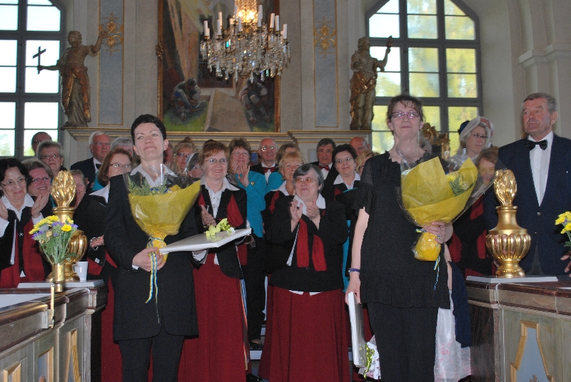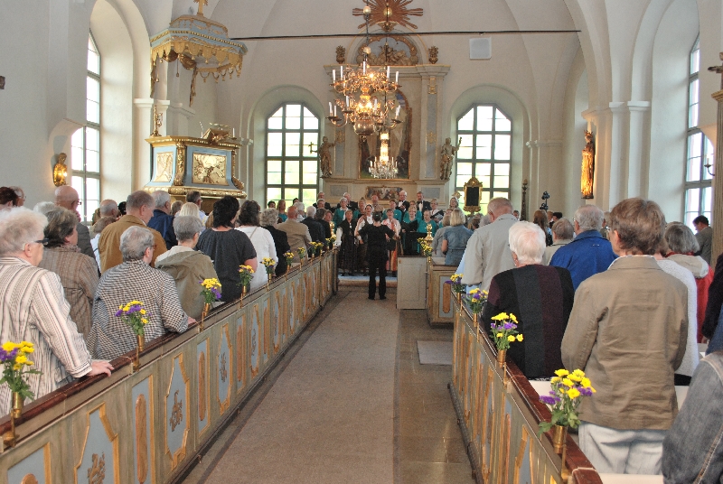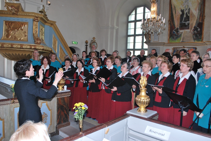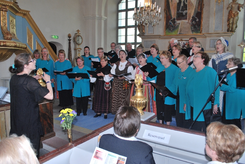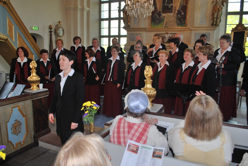 O godzinie 19.00 kościół był już pełen, ustrojony kwiatami w narodowych barwach Szwecji. Najpierw śpiewaliśmy my, potem wspólnie z chórem z Attmar wykonaliśmy "Ave verum" Mozarta. Powiększonym tak zespołem dyrygowała nasza Zuzanna. W drugiej części koncertu z krótszym nieco repertuarem wystąpili gospodarze. Potem obie panie dyrygentki, Agata i Zuzanna Kuźniak otrzymały piękne bukiety z niebieskich i żółtych kwiatów, oraz upominki od gospodarzy. Koncert zakończyliśmy wspólnym odśpiewaniem "Tourdiona". Przy wtórze tej piosenki wyszliśmy parami z kościoła.