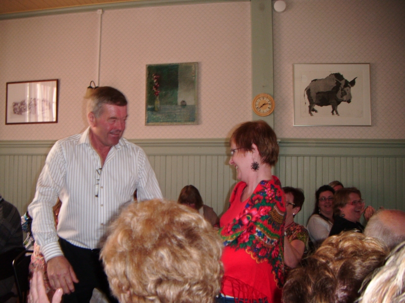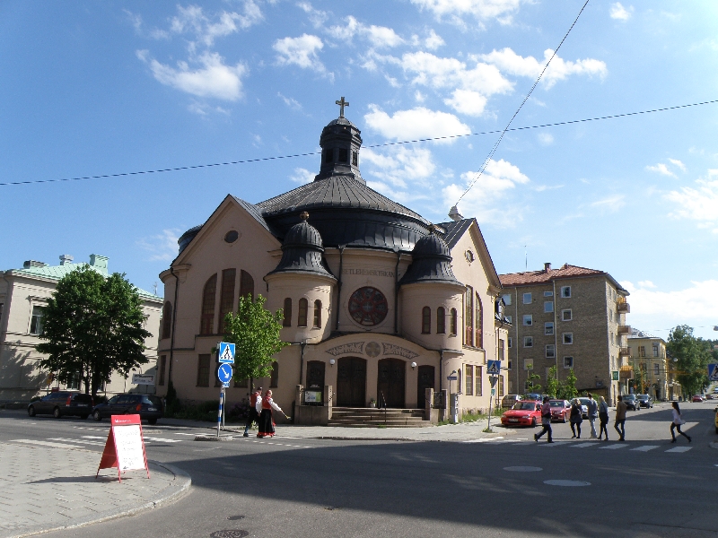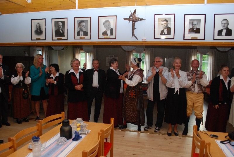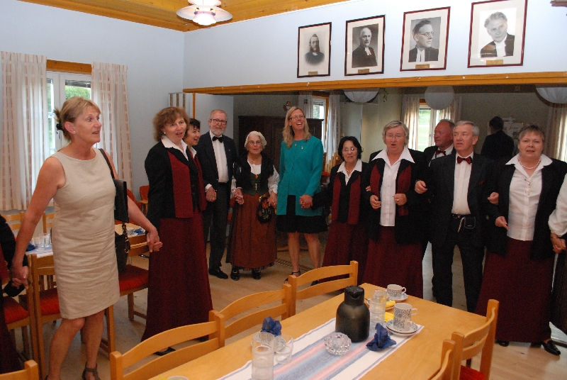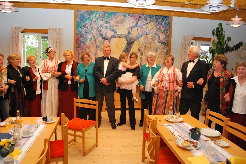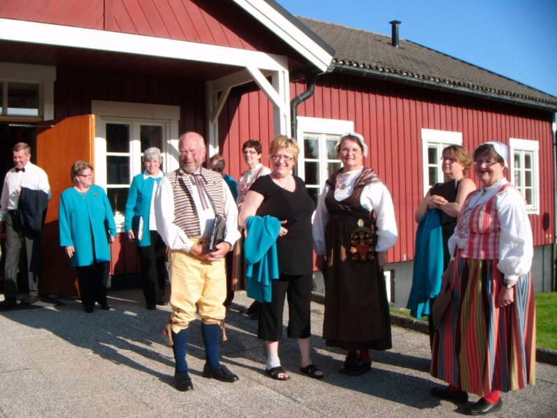 Natomiast my, Melechowie, ruszyliśmy w góry, do znajdującego się na obrzeżach Sundsvall Parku Narodowego. Zrobiliśmy piękny, prawie trzygodzinny spacer wśród sosen, kwitnących jarzębin i wonnych ziół. Zdążyliśmy jednak zejść do miasta i zobaczyć co nieco z festynu. Po obiedzie wyjechaliśmy przysłanym po nas autokarem do Attmar, gdzie mieliśmy wystąpić z najważniejszym w czasie tego pobytu koncertem. I znowu czekała na nas Zuzanna w przepięknym miejscu na wzgórzu, z białym niewielkim kościółkiem i drewnianą dzwonnicą, z uroczym zielonym cmentarzem, z którego roztaczał się słoneczny widok na jezioro, na sioła i lasy. Przed cmentarzem stoją kamienie runiczne pochodzące z XI wieku. Po próbie (częściowo wspólnej z chórem z Attmar) poczęstowano nas małą przekąską, herbatą i kawą.
