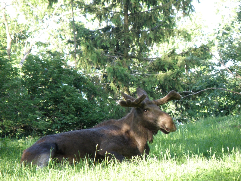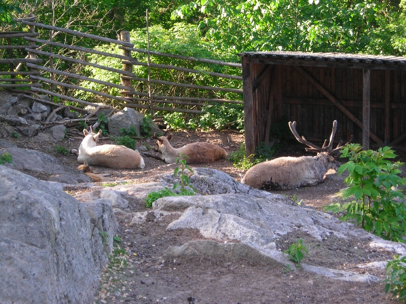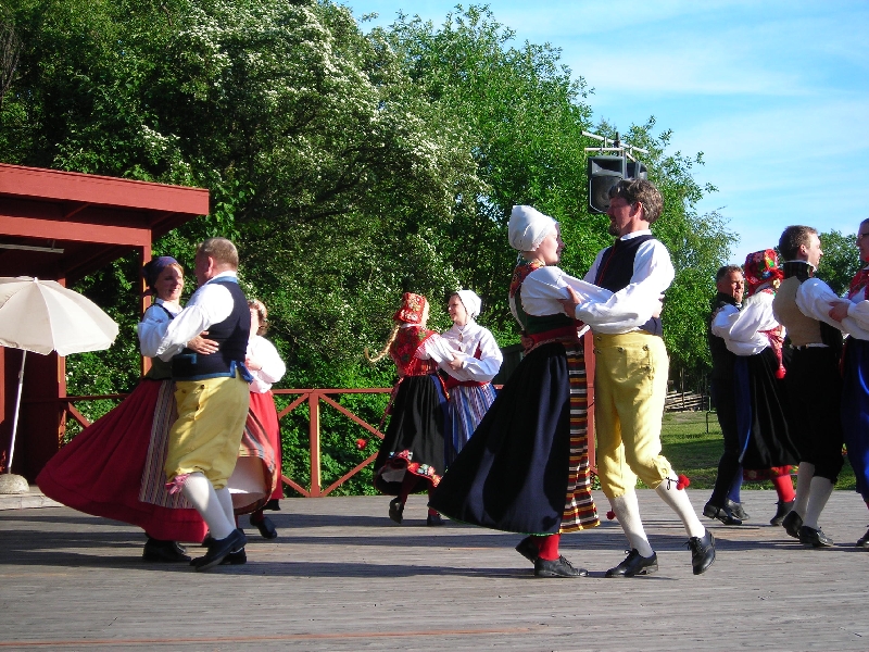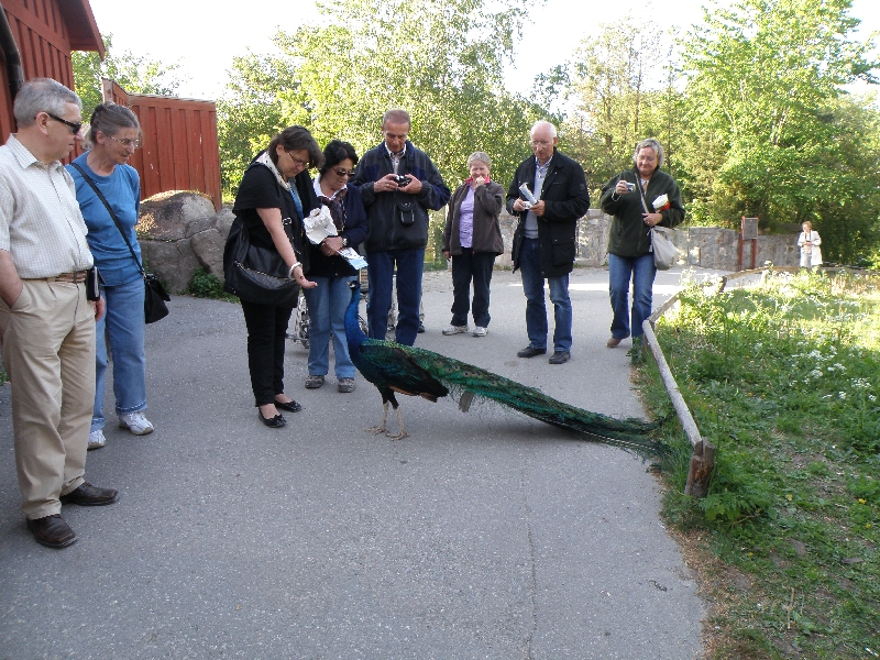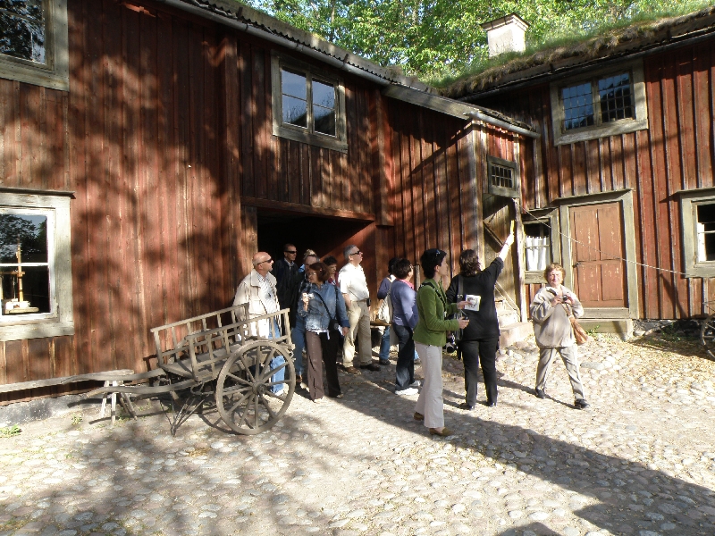 Następnie zwiedziliśmy piękny skansen z hodowlą łosi, renów, pawi i gęsi kanadyjskich. Niestety z powodu późnej pory nie zobaczyliśmy wnętrz licznych uroczych domków, w których używając starych narzędzi pracują przeróżni rzemieślnicy w strojach z epoki. Był to bardzo przyjemny spacer wśród zieleni drzew i krzewów, woni kwitnących bzów i kwiatów, z widokiem na leżące w dole miasto. Obejrzeliśmy tam również występ tanecznego zespołu ze Skanii. Dowiedzieliśmy się, że odwiedzające skansen małe dzieci zostawiają swoje smoczki dla malutkich łosi.