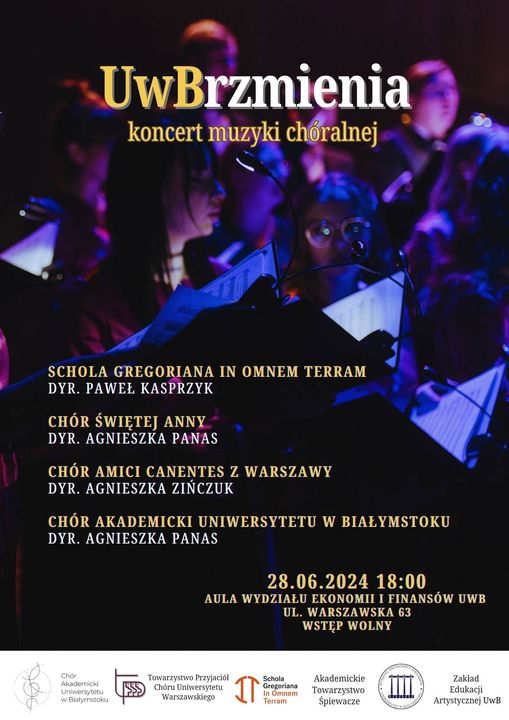 Zwieńczeniem naszej pracy był udział w I edycji festiwalu UwBrzmienia, organizowanym przez Chór Akademicki Uniwersytetu w Białymstoku. Koncert odbył się 28 czerwca 2024 w Auli Wydziału Ekonomii i Finansów UwB. Oprócz nas występowały jeszcze trzy chóry. Był to bardzo udany występ, zostaliśmy niezwykle ciepło przyjęci przez widownię i zaproszeni na kolejne edycje festiwalu.