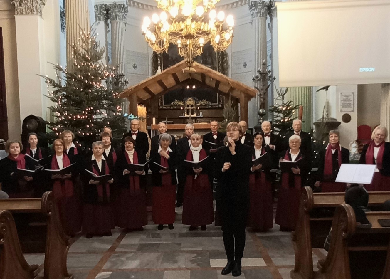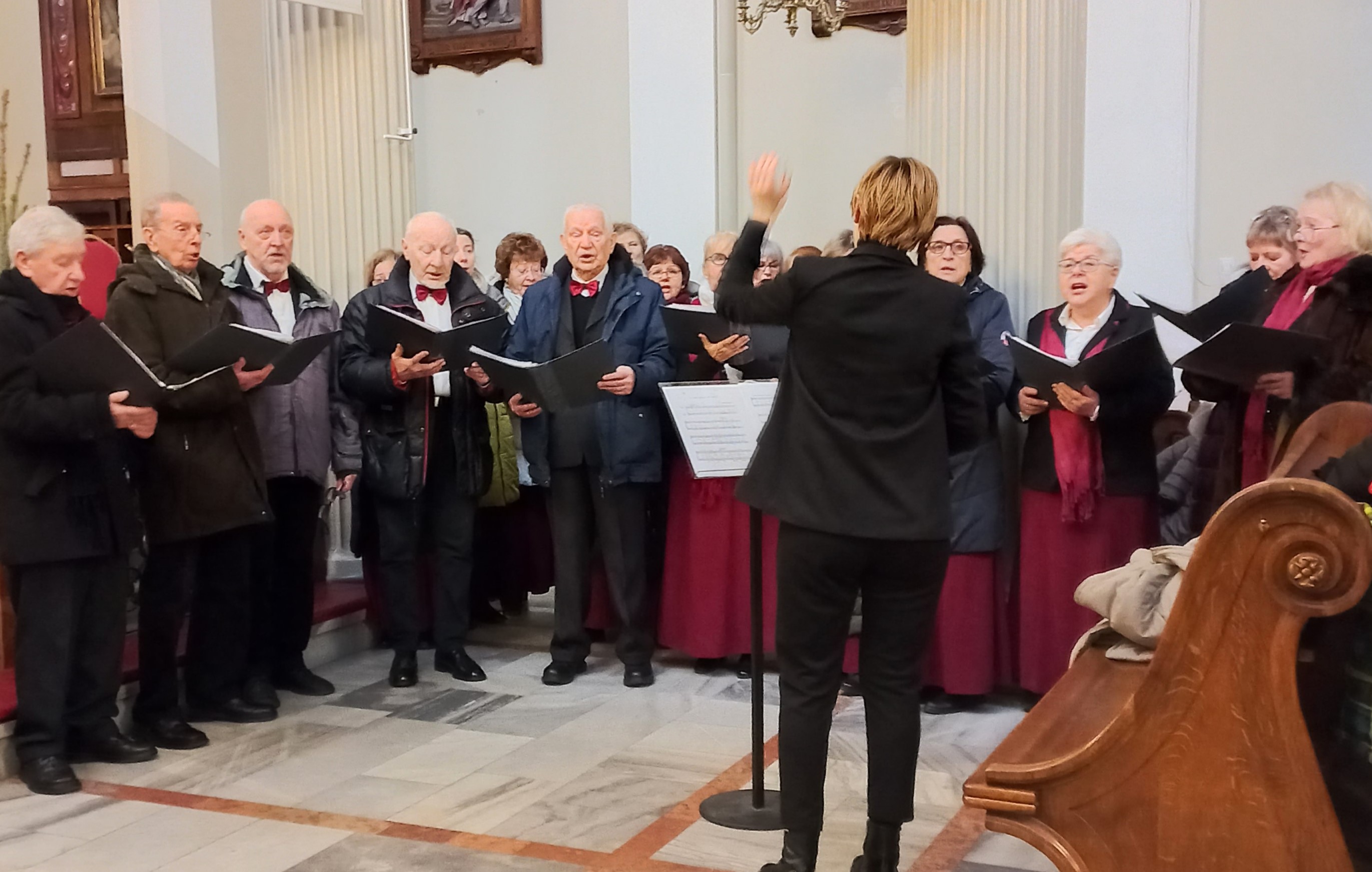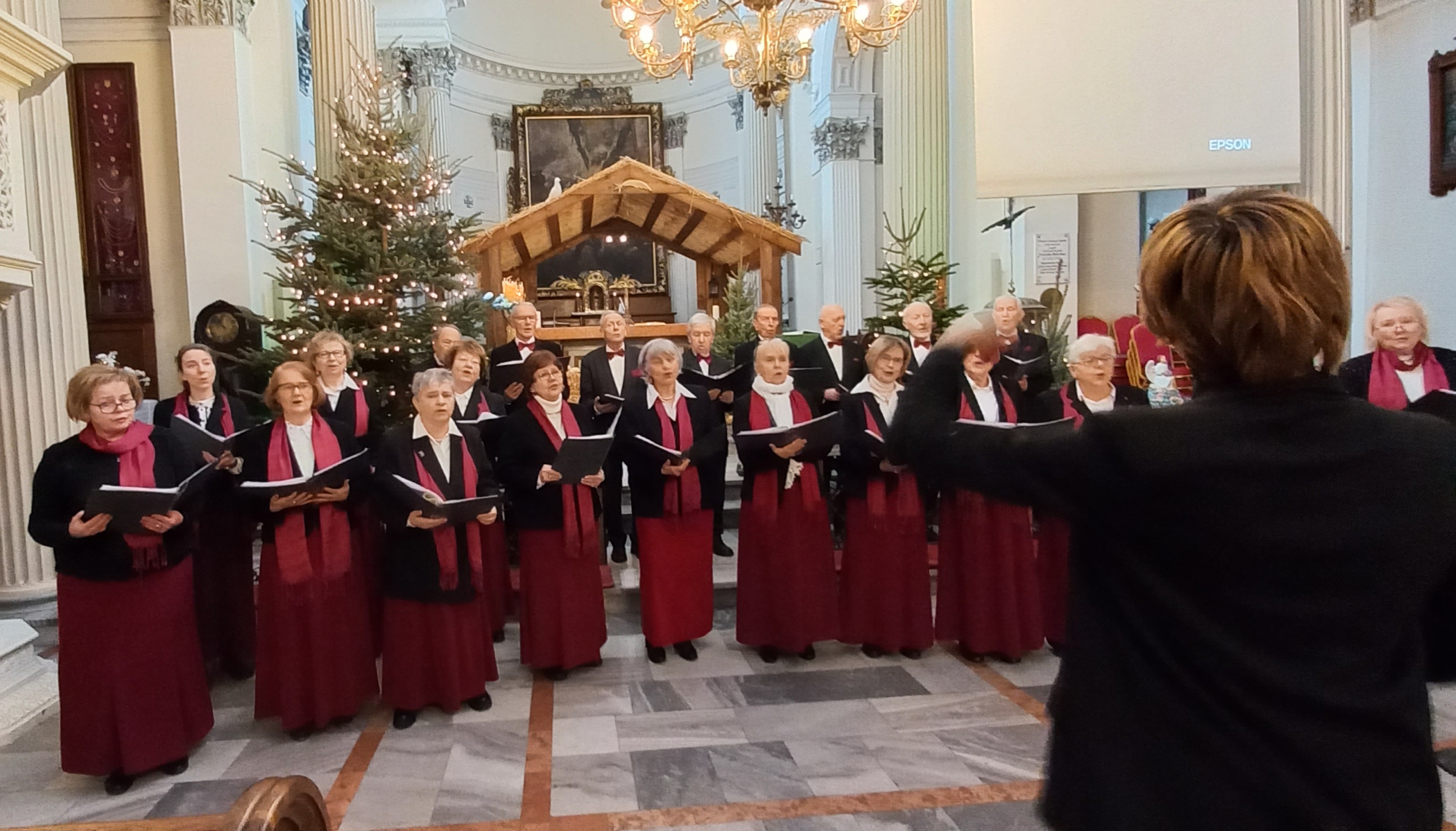 Tradycyjne polskie kolędy nasz Chór zaśpiewał w Kościele św. Aleksandra przy placu Trzech Krzyży podczas niedzielnej Mszy św. dla niesłyszących, 30.01.2022. Mszę odprawiał, posługując się językiem migowym, Ks. Dariusz Furmanik, duszpasterz archidiecezjalny osób głuchych. Treść kolęd objaśniali tłumacze migowi. Po Mszy serdeczne życzenia noworoczne złożyła uczestnikom Dyrygent Ilina Sawicka. Ks. Dariusz Furmanik obdarował Chórzystów ciekawą publikacją „Głusi mówią”, opowiedział nam też o założycielu Instytutu Głuchoniemych (w 1817 r.), Ks. Jakubie Falkowskim, pierwszym proboszczu tej parafii, którego pomnik znajduje się w Kościele św. Aleksandra.