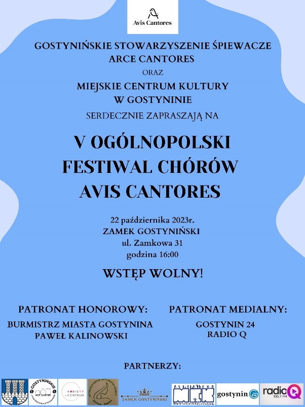 Chór Amici Canentes otrzymał zaproszenie do udziału w V Ogólnopolskim Festiwalu Chórów Avis Cantores w Gostyninie. Pod dyrekcją Agnieszki Zińczuk wykonaliśmy dwa utwory sakralne polskie: psalm Mikołaja Gomółki „Nowy monarsze możnemu” i „Ojcze nasz” Stanisława Moniuszki oraz dwa utwory świeckie obce: staroangielską pieśń „Greensleeves” i francuski madrygał „Tourdion”.
