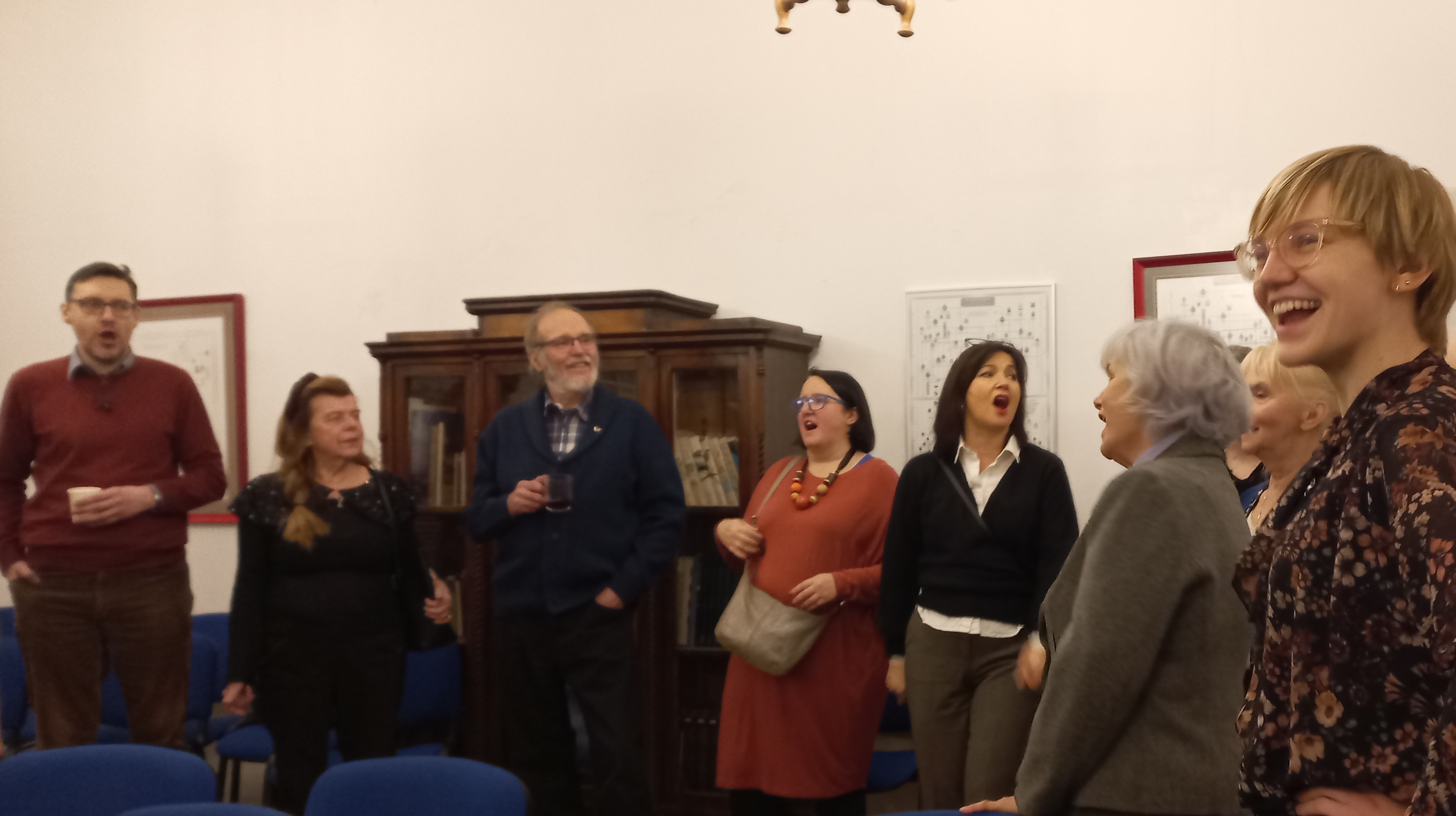 Biesiadna część spotkania była urozmaicona wspólnymi śpiewami znanego repertuaru rozrywkowego, począwszy od „Maków”, „Jaworiny” i „Buzuki”. Nie mogło zabraknąć też madrygałów staropolskich takich jak „Dobranoc ci Anusieńku” i „Skarżęć się matusiu moja”.