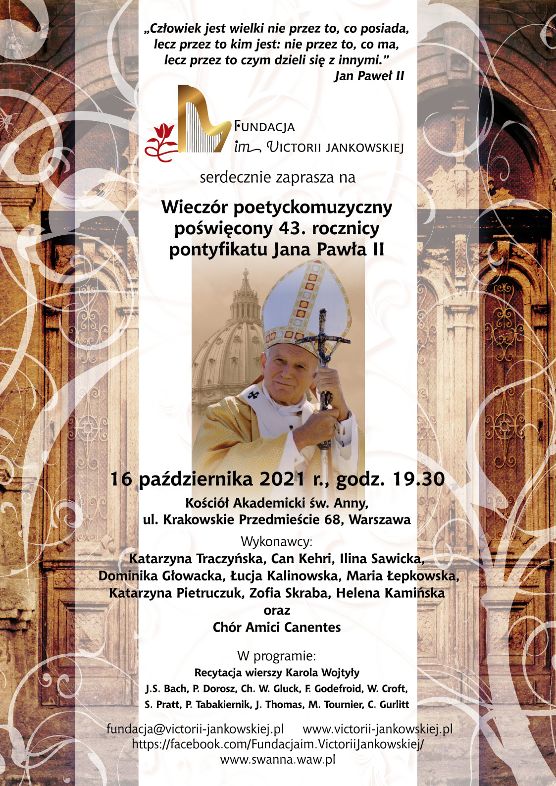 Wieczór poetycko-muzyczny w Kościele św. Anny w Warszawie – 16 października 2021