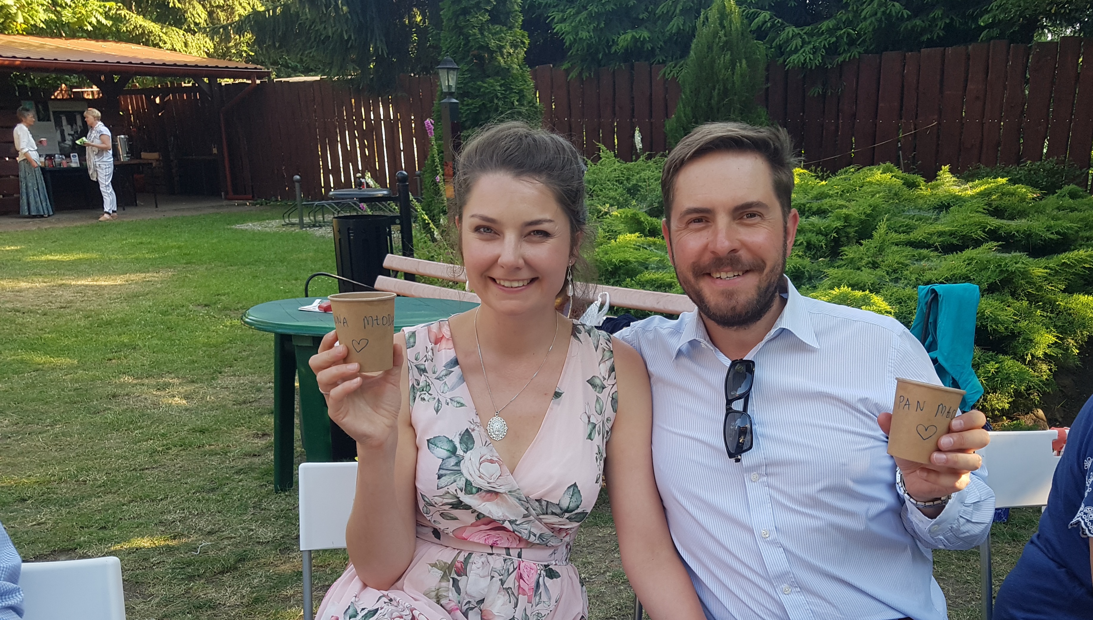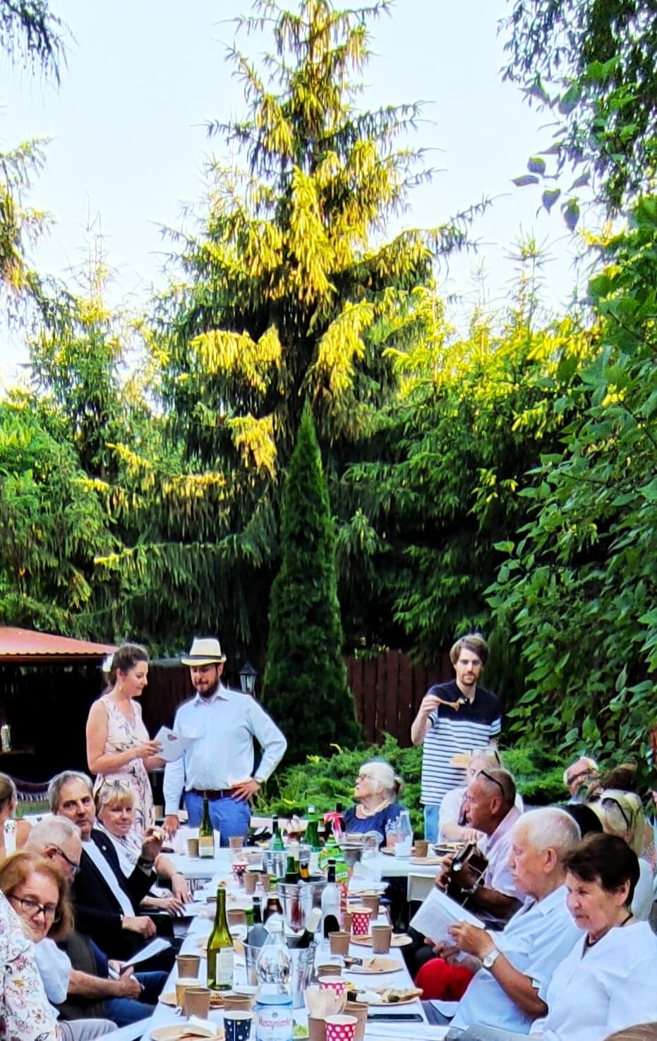 W słonecznej scenerii zielonego ogrodu licznie przybyli Goście spędzili pełne uroku popołudnie, degustując weselne trunki i słuchając okolicznościowego programu artystycznego w wykonaniu samych uczestników spotkania.