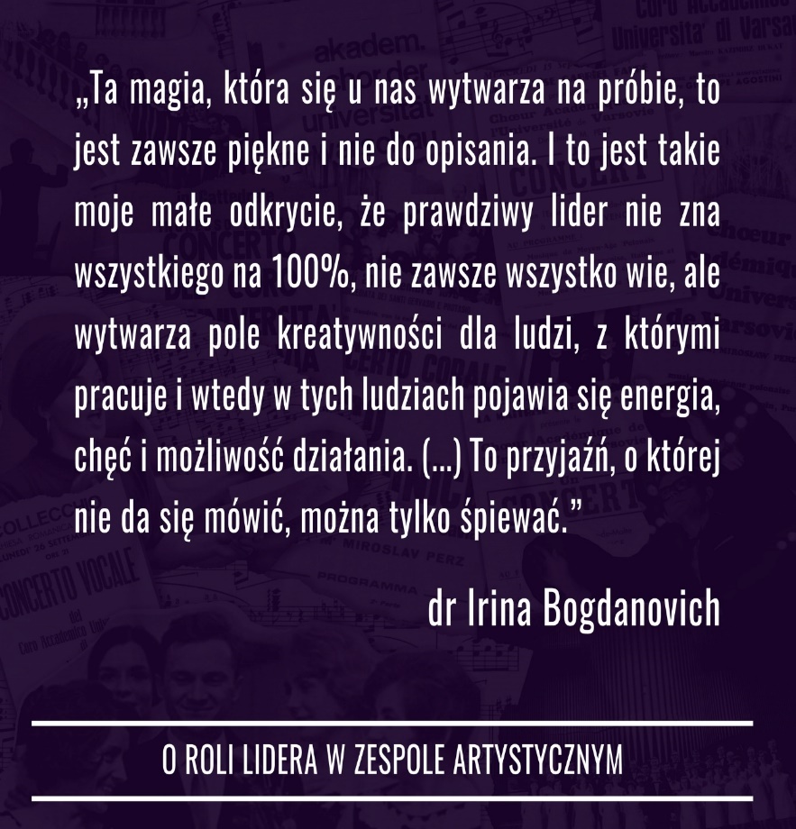 Szczególne podziękowania składamy Chórowi Akademickiemu Uniwersytetu Warszawskiego pod dyr. Iriny Bogdanovich, który uświetnił nasz koncert, występując z własnym repertuarem.