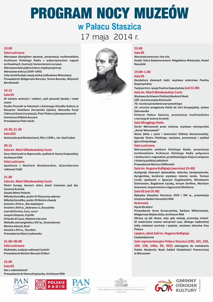 W dniu 17 maja 2014 odbył się koncert Chóru Amici Canentes pod dyr. Zuzanny Kuźniak w Pałacu Staszica, siedzibie PAN, podczas Nocy Muzeów.