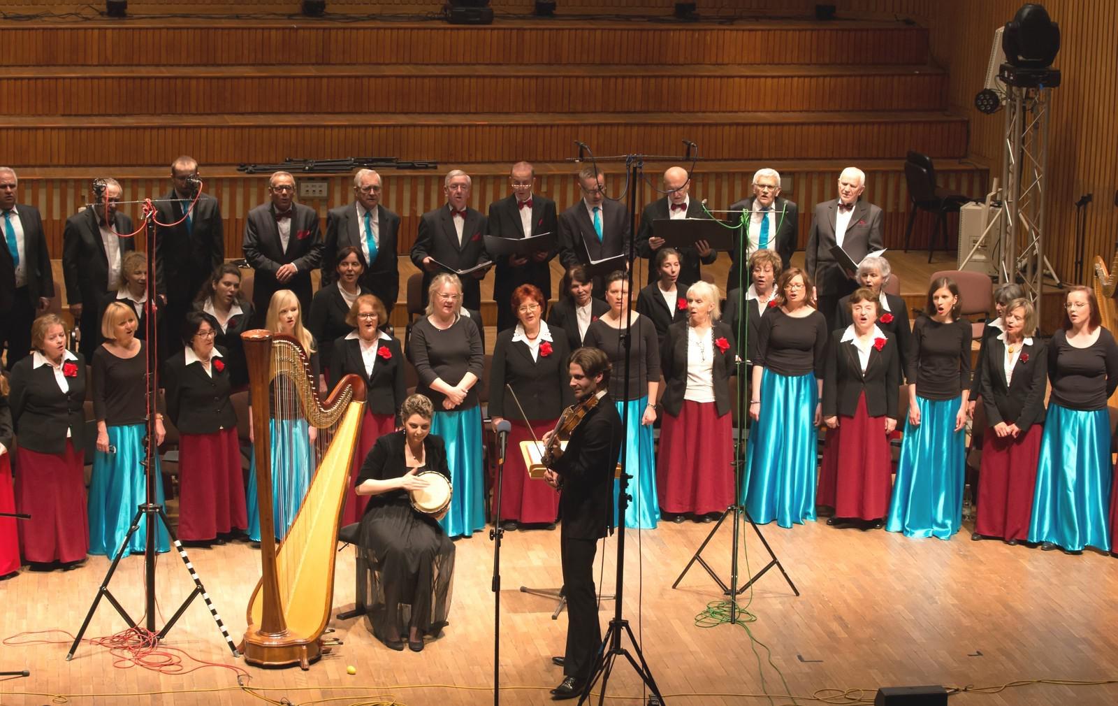 Wśród publiczności, licznej jak na tę porę, znajdowała się profesor Uniwersytetu Muzycznego Fryderyka Chopina w Warszawie, pani Ewa Marchwicka, promotorka naszej dyrygentki Iliny Sawickiej, akompaniującej tym razem pięknie na harfie. Dyrygował nami Jerzy, prowadząc oba koncerty i towarzysząc nam na różnych instrumentach.