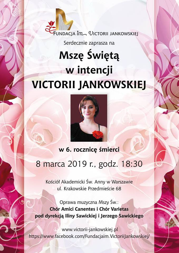 Chór Amici Canentes wykonał oprawę muzyczną Mszy Świętej w Kościele Św. Anny w Warszawie poświęconej pamięci harfistki Victorii Jankowskiej. Po Mszy odbył się koncert zorganizowany przez Fundację im. Victorii Jankowskiej wspierającą młodych artystów.